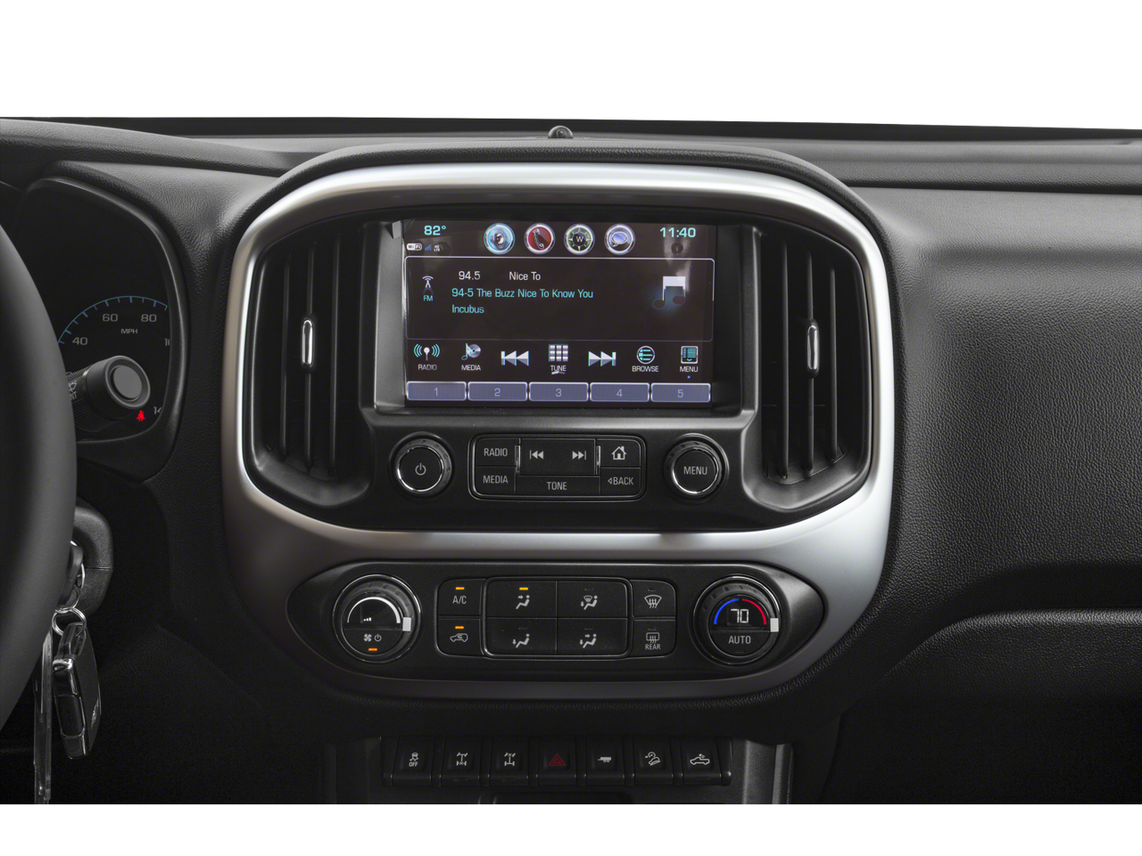 - Audio System, Chevrolet MyLink Radio with 8" diagonal color touch-screen, AM/FM stereo seek-and-scan and digital clock, includes Bluetooth streaming audio for music and select phones; voice-activated technology for radio and phone; featuring Apple CarPlay capability for compatible phone; includes auxiliary jack